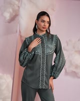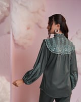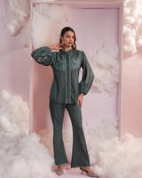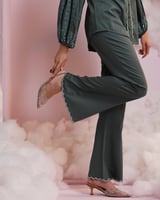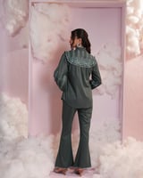 Bottle Green Embroidered Shirt and Flared Pants Co-ord Set