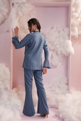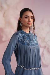 Denim Embroidered Fringe Co-ord Set with Bootcut Pants