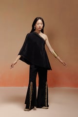 Black One-Shoulder Tunic and Sharara Co-ord Set