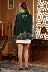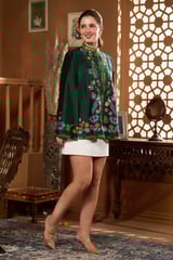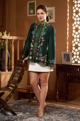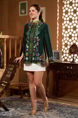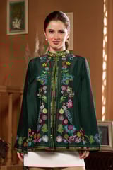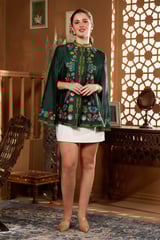 Green Kalamkari Embroidered Cape with Mandarin Collar