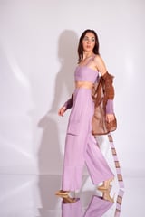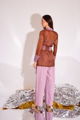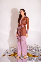 Brown and Violet Organza Jacket Co-ord Set with Belt