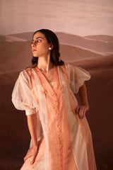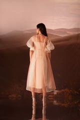 Peach Colorblock Midi Dress with Sheer Organza Overlay