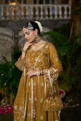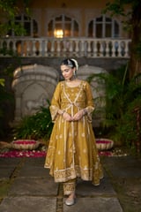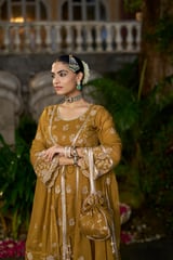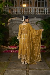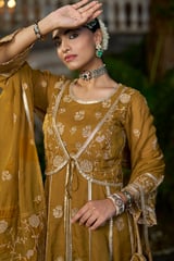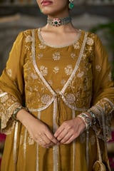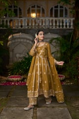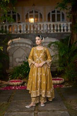 Yellow Organza Embroidered Anarkali Kurta Set with Dupatta