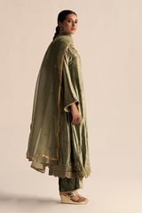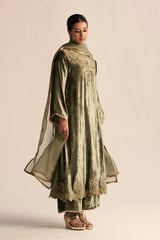 Deep Lichen Green Velvet Embroidered Kurta Set with Dupatta