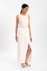 White Tonal Embroidered Sleeveless Crop Top