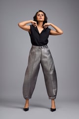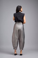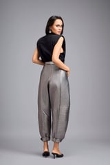 Gunmetal Metallic Quilted High-Rise Tapered Pants