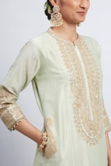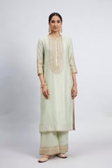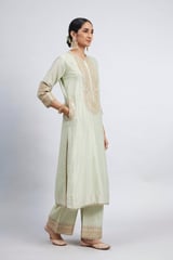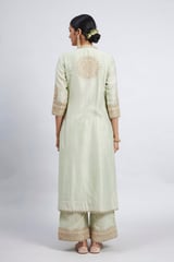 Mint Green Chanderi Silk Embroidered Kurta Palazzo Set