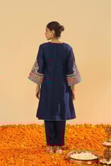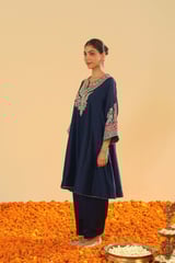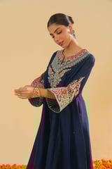 Dark Blue Embroidered Kalidaar Kurta Set with Salwar