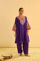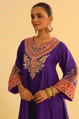 Deep Purple Embroidered Kalidaar Kurta Set with Salwar