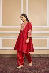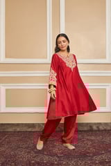 Deep Red Embroidered Kalidaar Choga Kurta Set