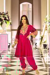 Hot Pink Kalidaar Choga Kurta Set with Salwar