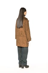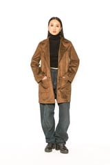 Brown Micro Suede Longline Boxy Blazer with Patch Pockets