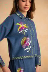 Indigo Blue Embroidered Denim Co-ord Set