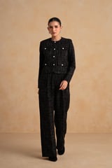 Black Tweed Jacket and Wide-Leg Pants Co-ord Set
