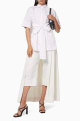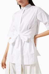 White Tie-Up Belted Cape-Back Shirt