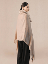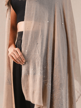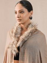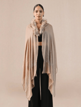 Beige Cashmere Cape with Fur Collar and Swarovski Beads