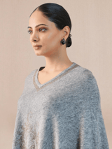 Grey Woolen Beadwork Poncho Cape