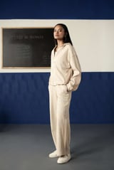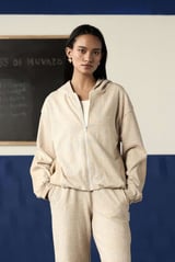 Buttermilk Jacquard Hoodie Zip and Wide-Leg Co-ord Set