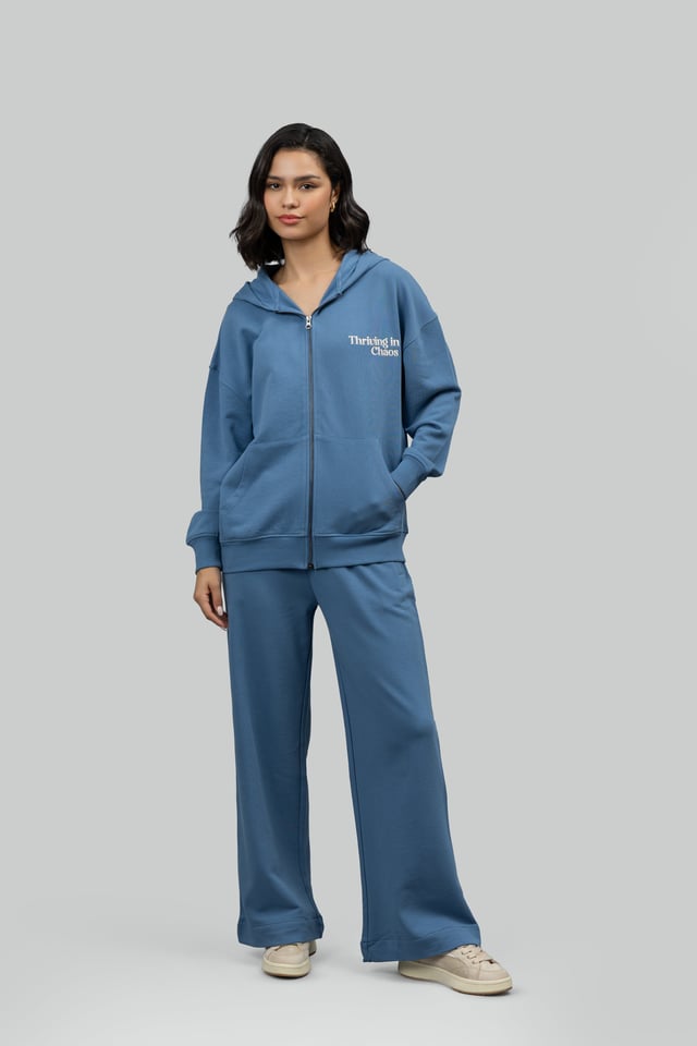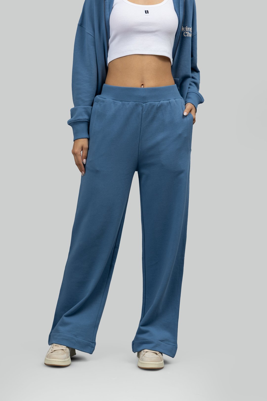 Cloudy Blue Terry Wide Leg Lounge Pants