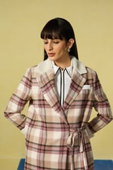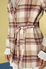 Mauve Checked Wrap Blazer Mini Dress Co-ord Set