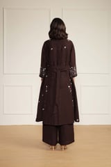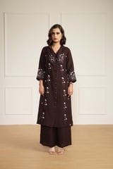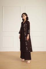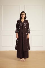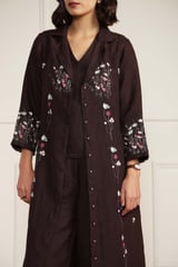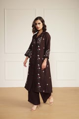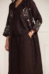 Grape Linen Printed Jacket, Top and Flared Pants Co-ord Set