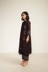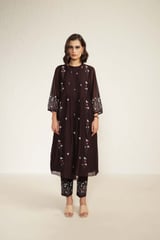 Grape Pleated Tunic and Straight Printed Pants Co-ord Set