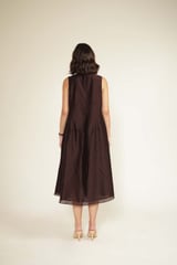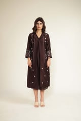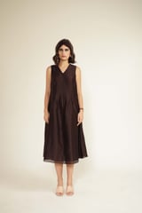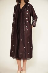 Grape V-Neck Sleeveless Midi Dress Set with Embroidered Jacket