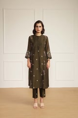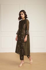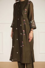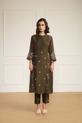 Olive Pintuck Tunic and Straight Pants Co-ord Set