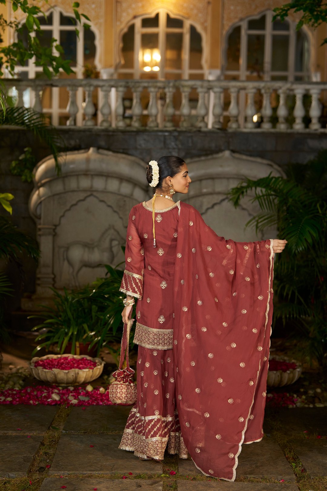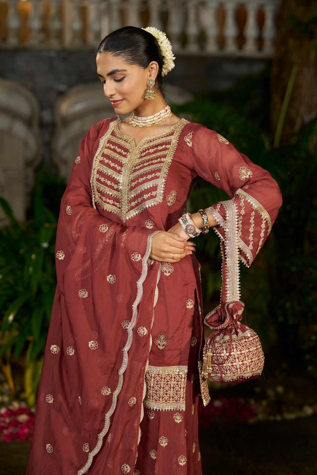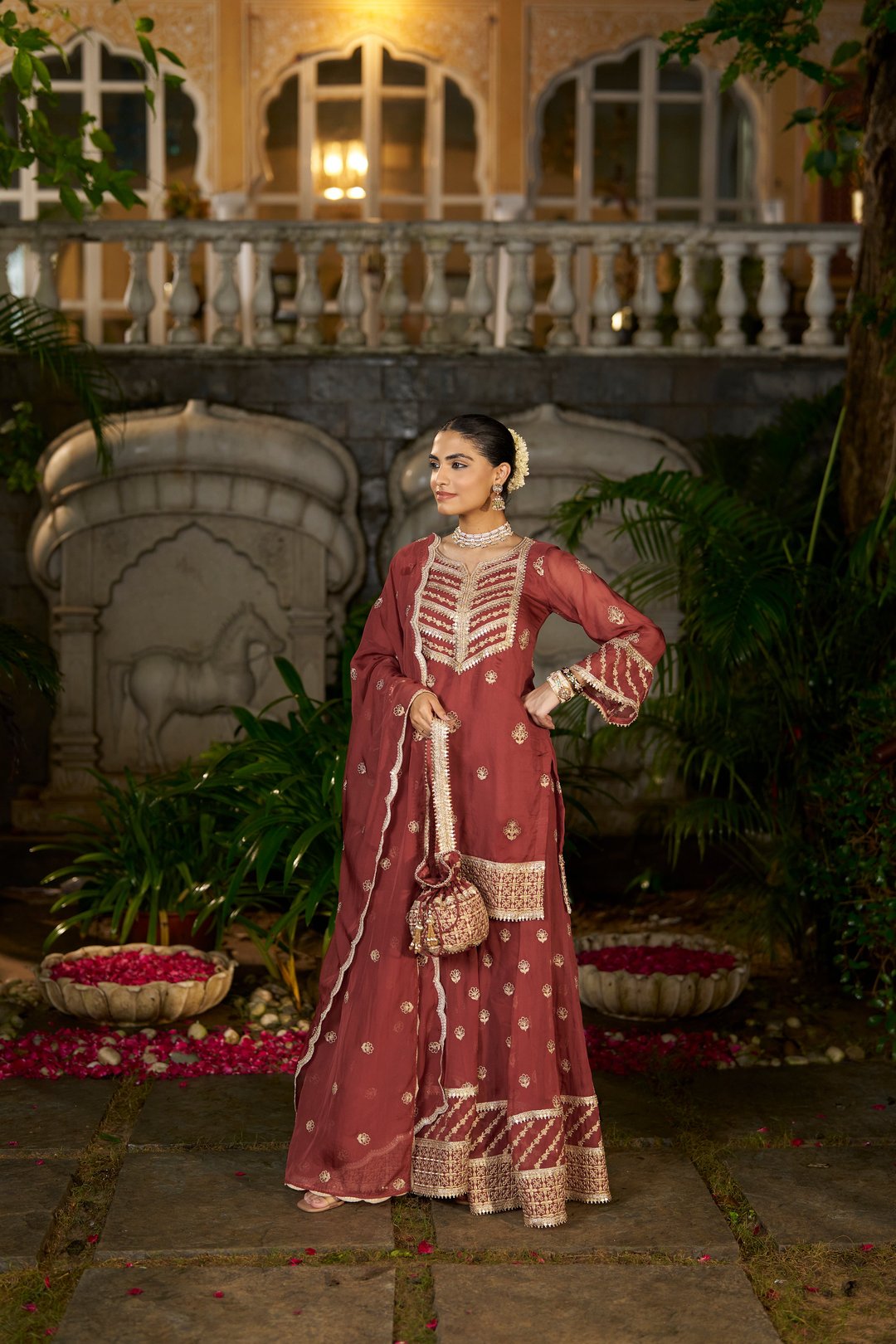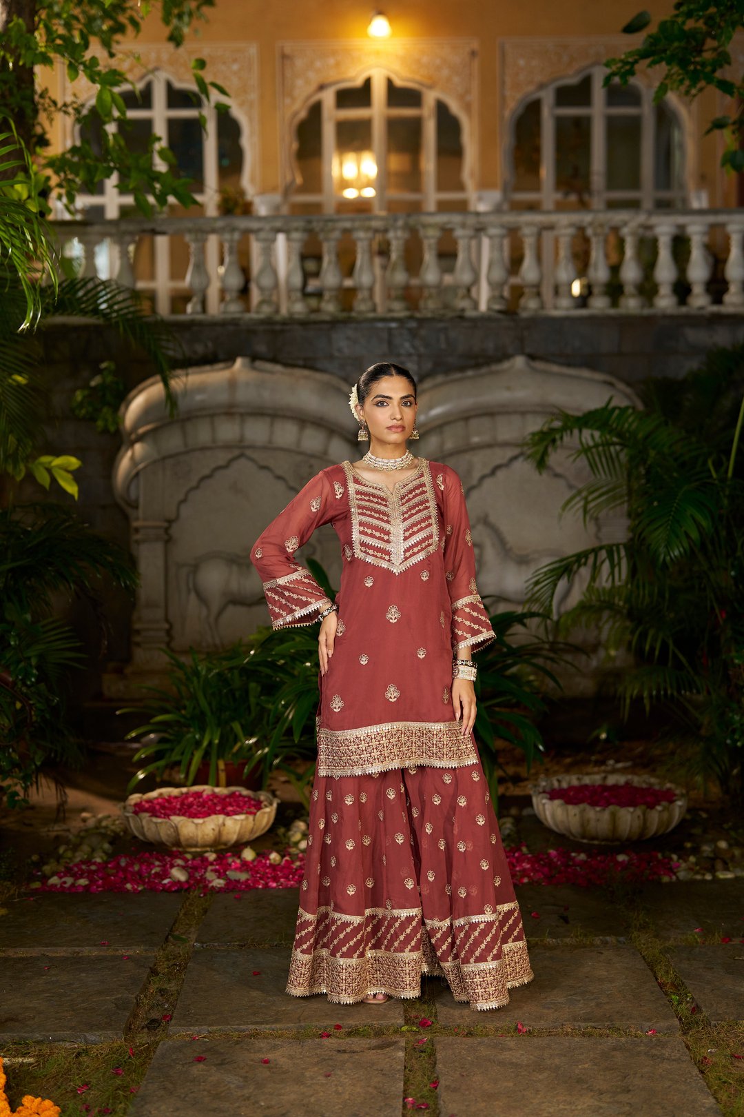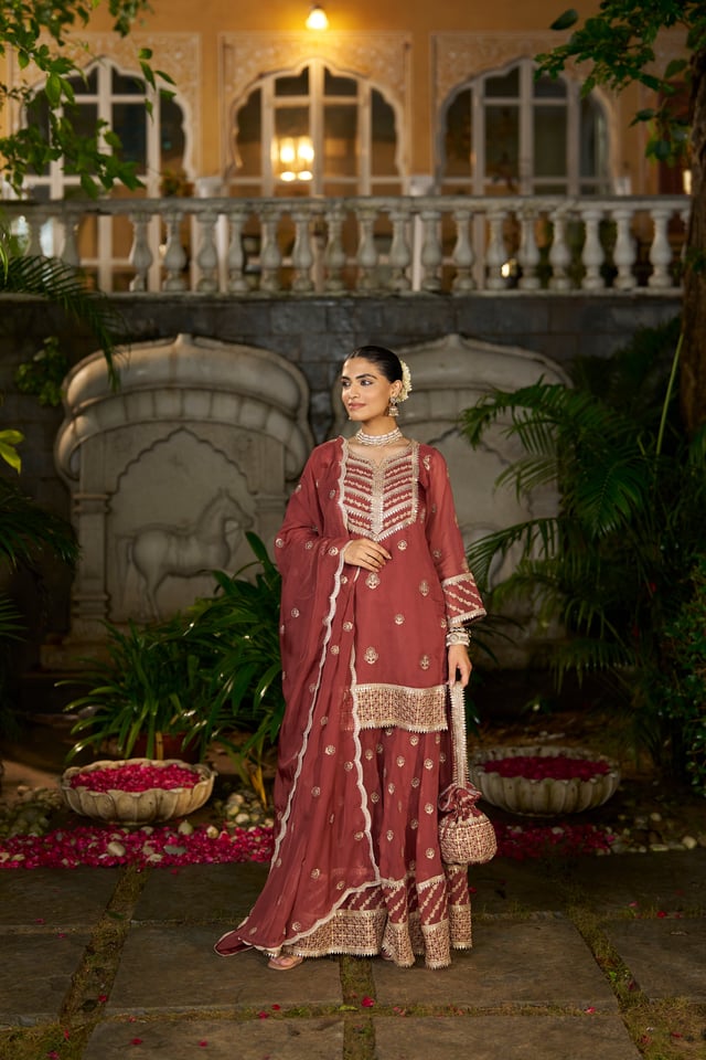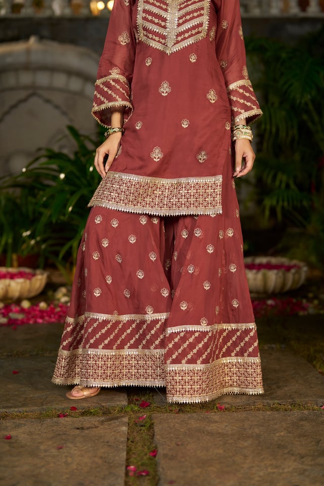Siyah - Rust Organza Sharara Set