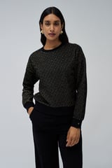 Black Geometric Lurex Shimmer Pullover Sweater