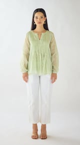 Lime Cotton A-Line Tunic with Pintucks and Embroidery