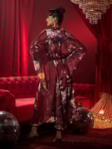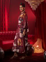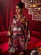 Burgundy Floral Printed Kaftan with Belt