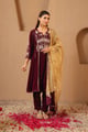 Wine Gota Velvet Anarkali with Narrow Pants