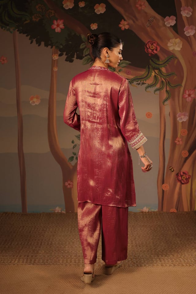 Zari Tissue Kurta with Flared Pants and Dupatta