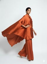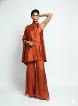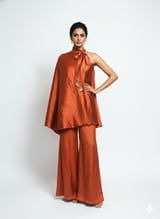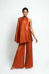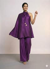 Purple One-Shoulder Cape Top and Wide-Leg Pant Co-ord Set