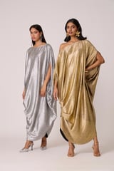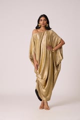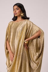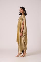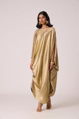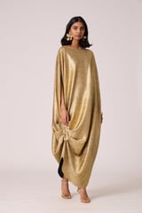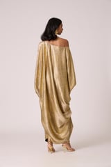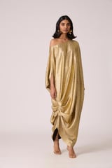 Gold Metallic Drape Maxi Dress with Boat Neck