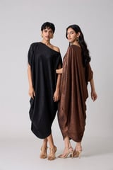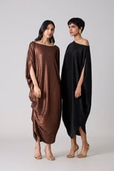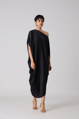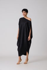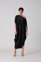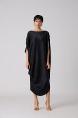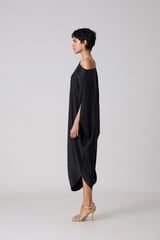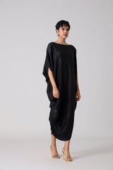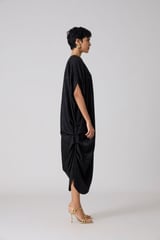 Metallic Black Draped Cocoon Midi Dress