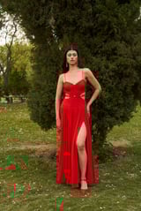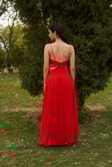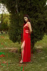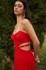 Red Cut-Out Waist Maxi Gown with Stud Detail