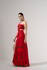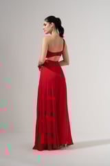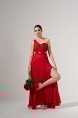 Crimson One-Shoulder Beaded Cutout Maxi Gown