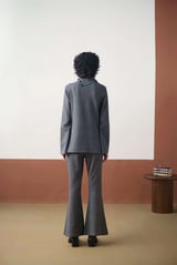 Grey Interlock Knit High Neck Co-ord Set with Flared Pants