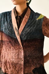 Multicolor Abstract Print Quilted Anti-Fit Longline Jacket