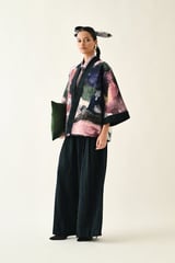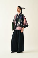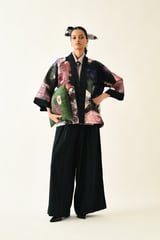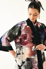 Multicolor Quilted Floral Open-Front Jacket