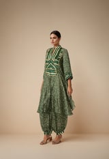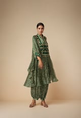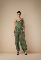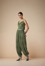 Olive Green Printed Afghan Salwar Trousers in Modal Satin