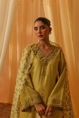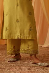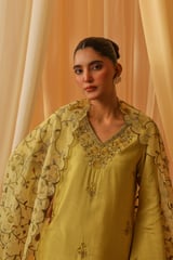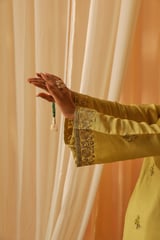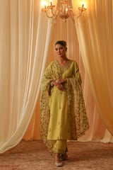 Yellow Chanderi Embroidered Kurta Set With Organza Dupatta