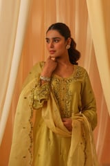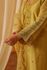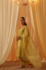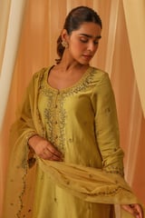 Yellow Chanderi Embroidered Kurta Pant Set with Dupatta