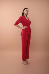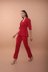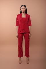 Red Crepe Blazer-Style Top and Pants Co-ord Set