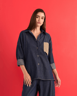 Denim and Jute Free Size Sack Pocket Shirt