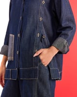 Indigo Denim Colorblocked Longline Relaxed-Fit Shirt