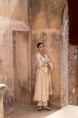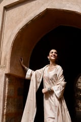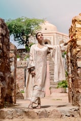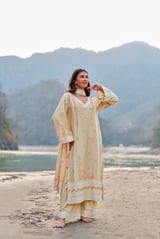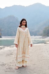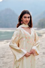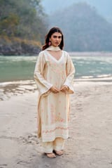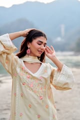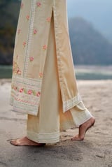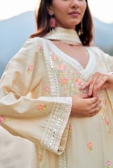 Beige Cotton Embroidered Straight Kurta Set With Dupatta