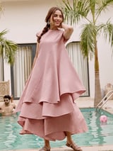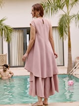 Pink Asymmetric Layered Tunic and Wide-Leg Pants Co-ord Set